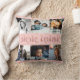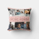 Custom photo grid collage throw pillow with a retro blush and light pink hearted pattern and burgundy personalized casual typography script. ++++++++++++ It can be a cute personalized gift for your mom or grandma on Mother's Day, Grandparent's Day, birthday, Christmas or any other occasion.