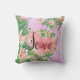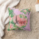 Travesseiro de decoração de Chique rosa doce, com rosas herbáceas e verde.