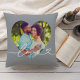 Design moderno e elegante de almofada personalizada apresenta uma foto favorita em um grande coração com uma sobreposição de design de tipologia "Amor" branca minimalista que inclui floreios e detalhes do coração. A cor de fundo cinza pode ser modificada. Uma ideia de presente único para um casal recém-casado ou para o seu amado no Dia dos Namorados!