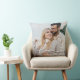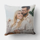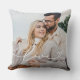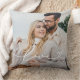 Design moderno e elegante de almofada personalizada apresenta uma foto favorita com um design de sobreposição de tipografia "Amor" branca minimalista que inclui detalhes de floreio e coração. O texto na cor branca pode ser personalizado. Uma ideia de presente único para um casal recém-casado ou para o seu amor no Dia dos Namorados!