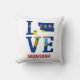 O amor do estado de Montana. Montana em uma fonte vermelha brilhante em letras maiúsculas. A palavra amor está preenchida com a bandeira do Estado e a letra O apaixonada é moldada na silhueta do Estado.