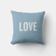 Uns namorados (ou Natal ou…) design temático do travesseiro decorativo, pelos red_dress, caracterizando a palavra "AMOR" em um fundo azul pálido.
