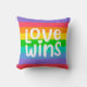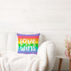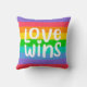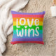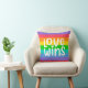 Este trabalho de arte apresenta um arco-íris colorido com as palavras Amor vence.