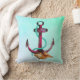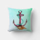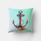 Um travesseiro com tema náutico. O fundo é uma cor aqua verde etérea. Um design marítimo legal com uma âncora rosa e verde com corda e haste, criado com aquarelas.