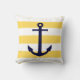 A âncora Marinho azul na Travesseiro decorativo das faixas amarela e branca da mostarda se dá bem com temas náuticos ou neutros.