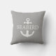 Âncora Náutica Branca com nome de barco personalizado sobre fundo de Cinza de Aquecimento Sólido para o mar elegante fora das áreas de assentos. Logotipo de âncora moderno combinado com o modelo de Nome de Barco de Font Serif clássico para a marca externa Boat e Yacht. Este travesseiro fácil de personalizar é também uma ideia de presente de excelente para ela e para ele, barqueiros e marinheiros. Ideias decoradoras de pátio feitas com amor oceânico. #ybeedesign #ybeesea #nauticalanchpillows #yachtexterior #boatexterior #elegantboatexterior © Design y.BEE SEA
