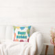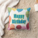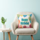 Feliz aniversário! Dê ao aniversariante ou menina um travesseiro de balões de aniversário meticuloso e divertido com nossos balões multicores com nossa textura de assinatura e as palavras Feliz Aniversário em azul e verde. Designs personalizados disponíveis.