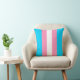 Almofada divertida em listras azul claro, rosa e branco para representar as cores da bandeira transgênero.
