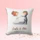 Lindo e fofo travesseiro de aniversário de casamento com uma noiva e um noivo dançando. Personalize o texto com suas próprias palavras. Ilustrado e projetado por Patricia Alvarez. Outros designs com esta imagem podem ser encontrados em minha loja.