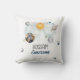 Celebre o marco especial do seu filho com este travesseiro decorativo de aniversário do tema temático do espaço sideral mágico. Apresentando planetas imaginários, luas e estrelas em marinho e mira dourada. Estas estrelas e Travesseiros decorativos planetas da Galáxia Solar Galáxia do Aniversário do Espaço Exterior são perfeitas para uma simples festa de aniversário. O moderno design whimsical mostra um fundo de marinho-azul-aquarela adornado com um sol vibrante amarelo, lua de cinza sorridente, planetas de cor pastel e estrelas de brilho dourado dispersas.