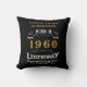 Para esses nasceres em 1960 e comemorando seu aniversário, temos o dom ideal do travesseiro decorativo de aniversário. O fundo preto com um design de design de tipografia de vintagem branca e dourada é simples e, no entanto, elegante com um toque retrorreflector. Personalize facilmente o texto deste presente de aniversário usando o modelo fornecido. Mais presentes e material de festa disponíveis com o design "Legendário" na loja.
