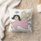 adorável anjo desenhado à mão num vestido de polkadot cor-de-rosa e fundo de polkadot cor-de-rosa senta-se a sorrir neste travesseiro a olhar sobre o seu pequeno - quão reconfortante! arte desenhada à mão por imagens kaps