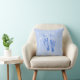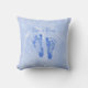 Um travesseiro do anúncio do nascimento do bebé com pegadas azuis bonitos contra um delicado marmoreou o fundo azul. Personalize adicionando o nome do seu bebé ao texto customizável que diz: Bebé!