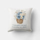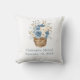 Este é um adorável travesseiro decorativo da Nursery com um pequeno urso num cesto de flores. As cores são azuis e beges. Personalize-o com seu nome e aniversário. Faz um excelente de novo presente para bebês ou de chá de fraldas.