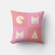 Travesseiro de quatro letras para um bebê recém-nascido e seus pais em cores bege rosa-quente. As 4 letras são personalizáveis ajustando o nome das crianças. As letras são escolhidas em caracteres bonitos para que pareçam friamente figurativas. As cores podem ser editadas de acordo com o desejo individual.
