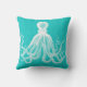 Belo aqua oceânico com um impressão de polvo branco. Este travesseiro tem a aparência de burlap sem ser áspero na textura. Escolha entre travesseiros de 20" x 20" quadrados ou retângulos de 13" x 21" no estilo de lista. Selecione 100% de tecido de grau A ou poliéster durável. O motivo oceânico torna este travesseiro perfeito para barcos domésticos, salas com temas náuticos, casas de praia, ou para o balanço da varanda. Apoiado pela garantia Zazzle, criada por Scarebaby Design.