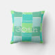 Design bonitinho e simples com cores modernas para primavera e verão (aqua, turquesa e verde-claro). Estes azulejos coloridos são feitos com linhas de hetero alternadas e linhas irregulares como faux batik. Travesseiro de aniversário personalizável com letras brancas.