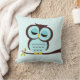 Travesseiro decorativo personalizado apresenta uma ilustração vetorial adorável de uma coruja empoleirada em um galho de árvore com um belo fundo bolinhas.