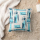 Almofada Aqua Turquesa em Formas e Linhas Brancas Design
