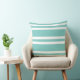 O travesseiro listrado bonito em listras brancas e verdes aqua suaves apresenta uma mistura de listras arrojadas e listras brancas estreitas de sotaque. Excelente sotaque para qualquer quarto na casa!