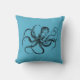 Beautiful aquamarine blue octopus decorative pillow. Lovely nautical accessory for your home. Decorated with a vintage illustration of an octopus printed in black on an a marine style background. Makes a wonderful artistic gift for an octopus and vintage art lovers.
