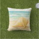 Destaque o seu espaço ao ar livre com um travesseiro decorativo de praia, protegido pelo tempo. Este travesseiro ao ar livre apresenta uma aquarela digital de concha em uma praia arenosa, com surf azul ao fundo. Este travesseiro é mostrado em um tecido externo protetor, mas se você preferir um tecido interior, escolha poliéster ou algodão. TRABALHO DE ARTE IA projetado por Susang6
