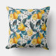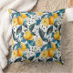 Almofada aquarela esboçada com detalhes das folhas azuis, l