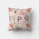 Flores e rosas brancas de grande poinsettia, terracotta vermelha, com folhagem verde de caçador sazonal e folhas sagradas, com bagas vermelhas sobre um fazer de fundo rosa-claro e elegante travesseiro decorativo de época do monograma moderno de Natal, em tendências. +++++++ Um buquê com padrão ao contrário.
