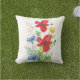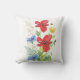 Almofada Aquarela Flores Vermelhas e Azuis em um Branco