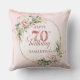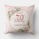 Celebre 70 anos com estilo com este travesseiro cintilante em rosa dourado. Com flores em aquarela em rosa poeirento, rosa bege e rosa claro, folhagens exuberantes, acentos de eucalipto e uma moldura dourada, este design boho, floral e boêmio é um presente perfeito para um travesseiro de 70 anos.