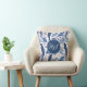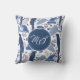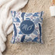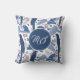 Travesseiro decorativo de Monograma de Padrão Tropical Azul de Ara. Padrão de ara com folhas tropicais em cores azul e rosa. Adicione suas iniciais.