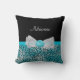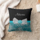 Um travesseiro decorativo bonito do impressão da chita do azul de turquesa com um arco branco completo frilly embellished com pérolas bonito e uma fita do rosette no centro. Toda a menina feminino que amar a turquesa e o preto amaria ter seu nome adicionado a este design animal do impressão do chique e do na moda. Imagem impressa do plano, fita nao real.