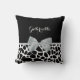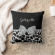 Um travesseiro decorativo de girafa branca e preta com uma fita elegante de cinza prateada amarrada a um arco feminino. Personalize este design de impressão de animais femininos adicionando seu nome. Imagem impressa plana, não arco real.