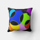 Design colorida e geométrica, intersetando círculos com cores arco-íris sobre fundo preto