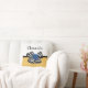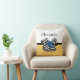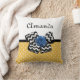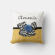 Adicione uma vibração girada ao seu estilo decorador doméstico com este travesseiro decorativo quadrado de padrão de bolinhas branco e amarelo com um arco chevron preto e branco de tendência e um rosa de fita azul-chic. Faça com que este retrato amarelo e azul encontre a design moderna personalizada adicionando o nome da sua adolescente. Imagem impressa plana, NÃO fita e arco de rosetas reais.