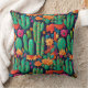 Cacto verde e flores brilhantemente coloridas sobre fundo azul escuro para o fã do sudoeste. Ilumine sua casa com este padrão perfeito que funcionará em qualquer tamanho ou forma de travesseiro.