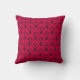 Este travesseiro decorativo tem um design de diamantes com deco de arte com linhas verticais e diagonais e círculos em um campo de rosa quente.