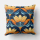 Almofada Art Deco - flores laranja azuis