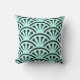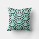Coordenado para ir com o relógio da parede "Art Deco Cut-A-Way" da HoMeArts, este travesseiro macio e confortável apresenta o mesmo Design de Wallpaper da Deco de Arte Japonesa da década de 1920 em preto num Fundo Aqua.