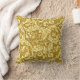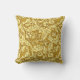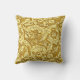 Travesseiro decorativo de um design William Morris de folhas estilizadas de acanthus e flores de botões de solteiros, digitalmente melhorados e coloridos em tons de amarelo mostarda, esboçados em marrom-chocolate escuro, sobre fundo de ouro mostarda profundo