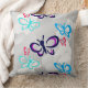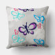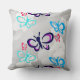Essa trabalho de arte evoca a sensação de leveza e liberdade com um padrão simplista de borboletas em várias matizes colocadas contra o fundo da nuvem branca e cinza, resultando num travesseiro decorativo lúcido e lúdico.