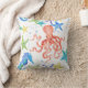Um polvo de laranja vermelho doce toca no mar com cavalo marinho e uma variedade de estrelas-do-mar, todas pintadas manualmente na cor da água acrílica na canvas. Eles são mostrados sobre um fundo branco com placas azuis. O verso é uma xadrez pintada manualmente em azul-aqua, azul e verde limão. Um conjunto completo de designs está disponível para coordenar para o seu próprio design de decoração doméstico. Copyright, Audrey Jeanne Roberts.