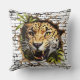Um espantoso travesseiro decorativo de quebra de parede 3D com um leopardo realista emergindo através de concreto rachado com folhagem tropical atrás. A trabalho de arte hiper-detalhada cria uma ilusão de profundidade e movimento, perfeita para amantes de os animais e decor com tema safari.