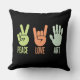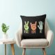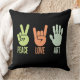 Este travesseiro decorativo ousado e moderno apresenta três sinais de mão icônicos: o sinal de paz, o gesto de mão de amor, e uma palma aberta simbolizando arte. Com tons suaves de verde, laranja e creme em um fundo negro, este design fornece uma mensagem simples, mas poderosa: Paz, Amor, Arte. Perfeito para artistas, criativos e espíritos livres que querem trazer positividade e inspiração para o seu espaço. Um sotaque na moda para estúdios, quartos ou salas de estar, e um presente pensativo para entusiastas da arte.