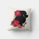 Travesseiro com design da arte do silhoutte da caniche e as flores vermelhas. Parte traseira e parte dianteira sobre impressas. Disponível como o travesseiro interno e exterior. Grande presente para proprietários da caniche! Preto, vermelho e branco do creme.