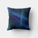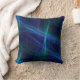 Este travesseiro decorativo moderno apresenta névoa fractal abstrato em verde e azul sobre fundo preto.