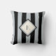 Este travesseiro elegante, moderno do estilo vem na prata corajosa, à moda e em listras pretas. Um diamante do marfim com uma prata e uma beira preta é no centro do travesseiro, e você pode personalizá-lo com seu próprio inicial ou monograma do estilo do art deco. Aperfeiçoe para um encanto, fino, os anos 20 olham!