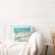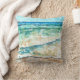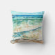 Abstrato Beach Themed Pintura Travesseiro decorativo. Perfeito para a cabana, lago de cabana ou aluguel de praia ao lado do oceano. Tem uma bela linha costeira, uma pintura de borda em blues, chaleiras e cremes. Design pelo Emporium de Jenn.