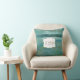 Personalize este Travesseiro decorativo da Beach House com seu nome ou nome comercial de propriedade alugada. Perfeito para a cabana, lago de cabana ou aluguel de praia ao lado do oceano. Tem uma bela linha costeira, águas de borda pintando em blues, verdes e ouro. Fácil de personalizar com suas próprias informações. Design pelo Emporium de Jenn.