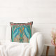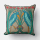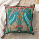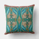 Este travesseiro decorativo impressionante apresenta uma bela adaptação de um design do final do século XIX por Charles Voysey. Dois guindastes azuis e aqua ficam sob o guarda-chuva das flores vermelhas do gerânio, em cima de caules verdes esmeraldas graciosos, formando um ninho celta influenciado.
